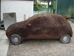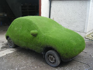 In 2008 we were trying to promote Summerhill Lawns by having something unique on our stands. We decided to try and grow grass on a car and if it proved successful we would bring it to Bloom Garden Show in the Phoenix Park.